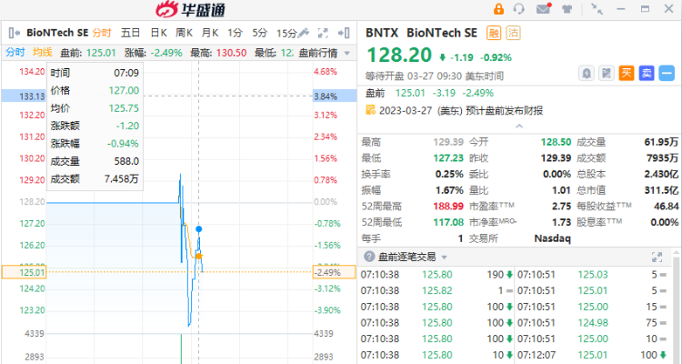 截止发稿,BioNtech盘前跌2.49%,曾一度跌超4%。