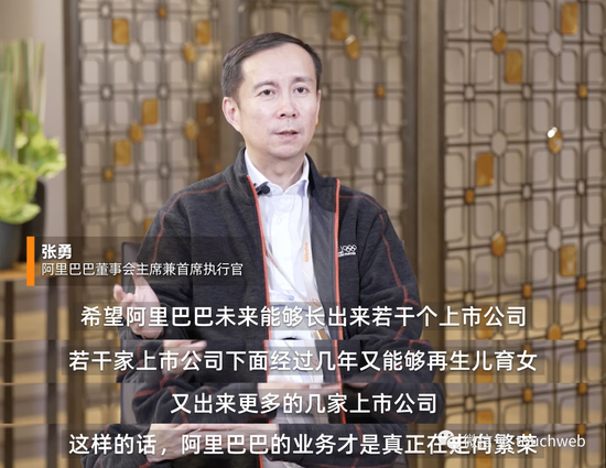 张勇(逍遥子):我想,大家对这句话都会非常关注。今天阿里巴巴作为一个整体上市的公司,有多样性的业务。纵观全球的大型的上市公司,有的体量比我们大;但业务如此多元多样、跨度那么大的,很少。从这个角度来讲,多样性的业务,与其放在一个锅里、一个上市载体里端出去,还不如到了市场接受的条件,就果断地让他们单独面对资本市场,成熟一个,上市一个。