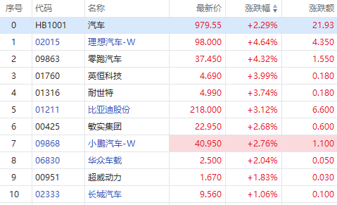 汽车股造好,理想汽车、零跑汽车涨超4%。比亚迪绩后涨超3%。