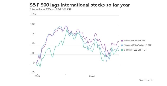 FactSet的数据显示,iShares MSCI ACWI ex U.S. ETF(追踪美国以外的全球股票)今年迄今上涨了4.7%,iShares MSCI EAFE ETF(专注于欧洲、澳大利亚和远东发达市场股票)今年上涨了5.9%,表现均优于标普500指数,后者今年迄今上涨了3.4%。