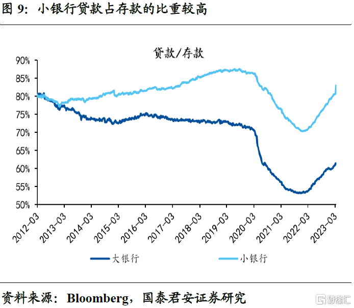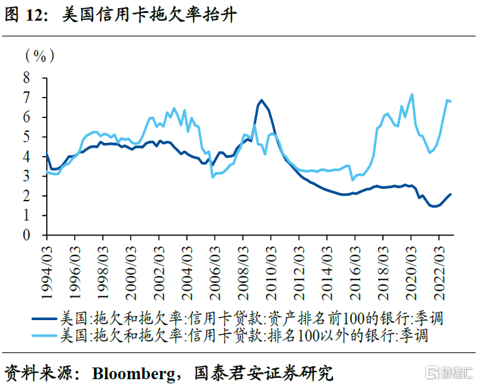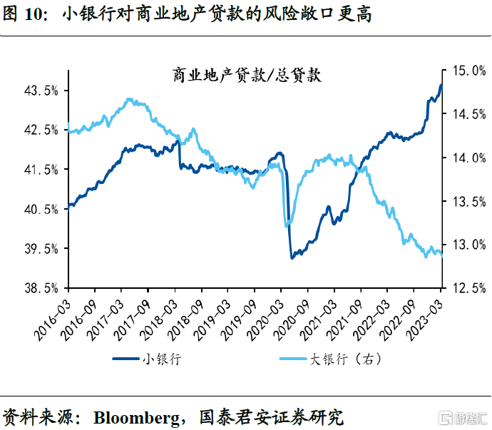 其次,流动性风险外,小银行也面临着信用风险问题。从总量上来看,小银行对贷款占存款的比重更高,信用风险敞口更大。从结构上来看,对商业地产的贷款占小银行对外贷款的比重接近一半,但当前美国商业地产贷款的拖欠率正在缓慢上升中,同时一些优质地产商也出现违约问题,使得后续小银行的资产质量、收入、盈利都有可能出现较大问题。小银行的信用风险与流动性风险的叠加,可能是后续最大的风险点。