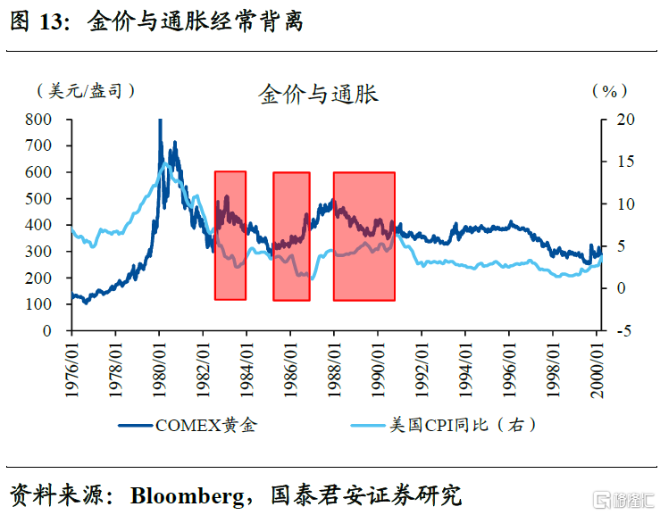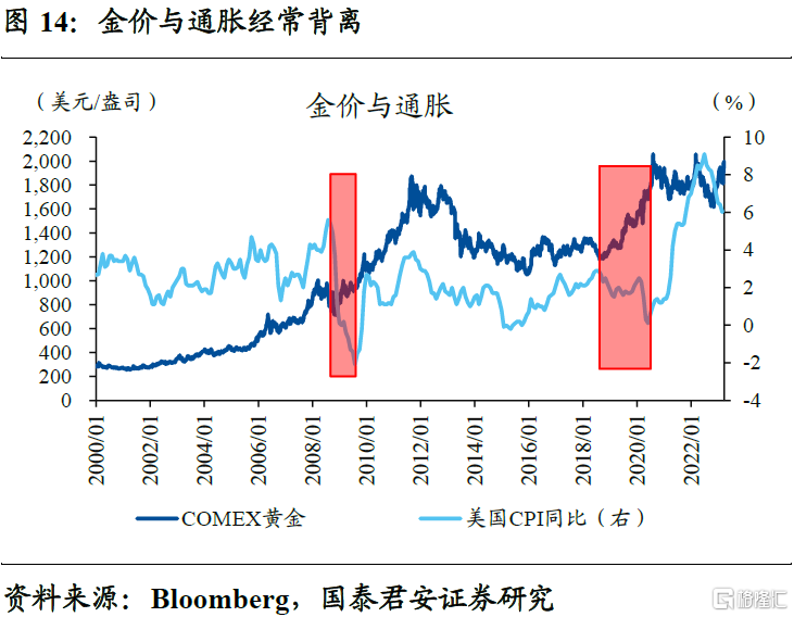 黄金作为不生息的类债券资产,与实际利率的关系不言自明。除了极个别的供需扰动外,基本上实际利率下行阶段,金价往往同步上涨,反之也成立。