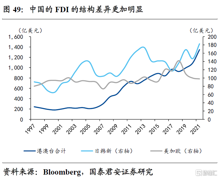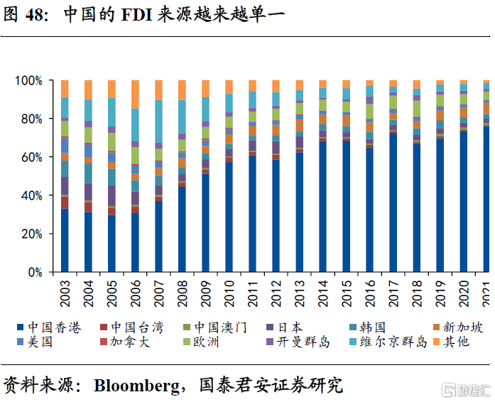 回到中国,中国本土FDI结构越来越单一,从FDI来源来看“阵营化”更加明显,中国与全球直接投资格局的演变将对大国产业政策带来更加深远的影响。