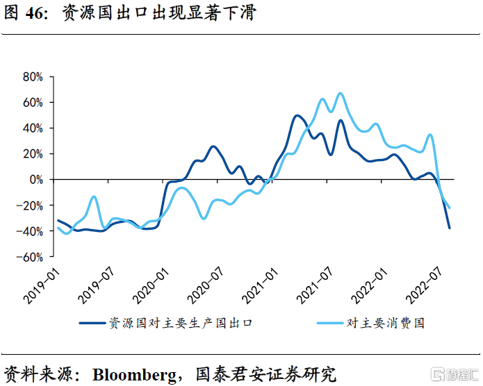 3、资源国出口在2022年出现显著下滑,同时消费国对生产国和资源国的ODI下滑从2018年以来都更加明显,这是资源品将长期处于紧平衡的因素之一,并且短期也很难发生改变。