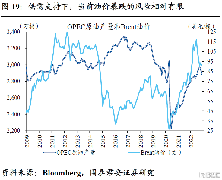 决定通胀预期的核心,其实是油价。供给端,OPEC继续推进减产计划,美国页岩油产能投放不足、产量缓慢增长。需求端,中国等经济体经济重启的提振下,原油供需大概率维持紧平衡,油价出现暴跌的概率极低,不排除维持震荡上涨的可能。这意味着,通胀预期大幅回落的概率也相对有限,考虑到名义利率逐步见顶,实际利率的下行空间即将打开。