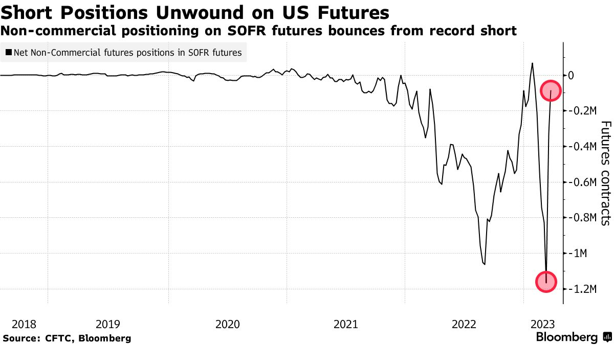 这是花旗集团的最新模型以及美国商品期货交易委员会(CFTC)的美债头寸数据得出的结论。投资者争相退出空头头寸,导致2年期美债收益率较3月8日逾5%的高点下跌约100个基点,原因是银行业动荡导致交易员退出对美联储收紧政策的押注。