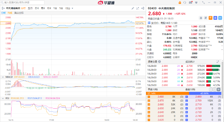 华盛资讯3月29日消息,总承包建筑商中天湖南集团暗盘高开高走,最终收涨127.12%,报价2.68港元每股,暗盘成交额1040万港元,按发行价计算中签一手收益为3000港元,明日正式在港股挂牌上市。前往新股中心,查看更多>>