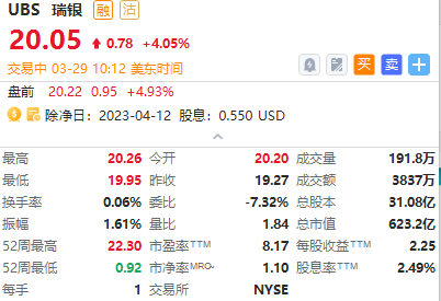 瑞银涨超4%,报20.05美元。瑞银宣布,任命Sergio P. Ermotti为新任首席执行官,4月5日起生效,他将负责指导收购瑞信这起金融危机以来最重大的银行业合并案。