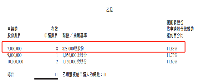 力盟科技申购一手中签率25%,申购20手稳中一手;乙组共11人,乙头获配207手。