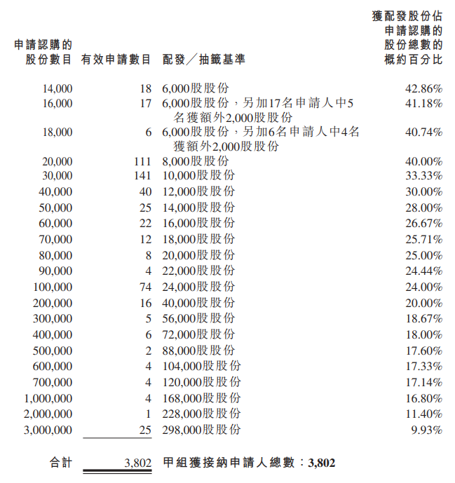 中宝新材(02439)公布招股结果,每股定价1.05港元,每手2000股;公司股份于香港公开发售姐果断接获3810份有效申请,超购约5.33倍。国际发售项下分配予158名承配人的发售股份最终数目为2亿股发售股份,相当于全球发售项下初步可供认购的发售股份总数的80%。