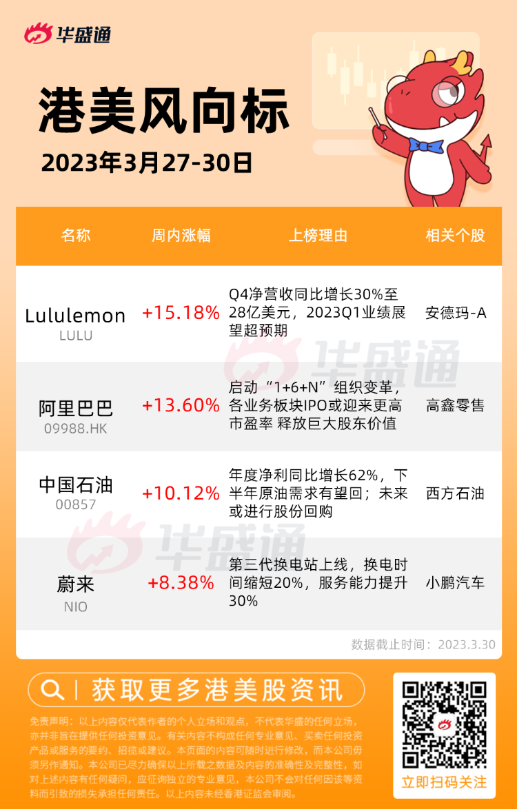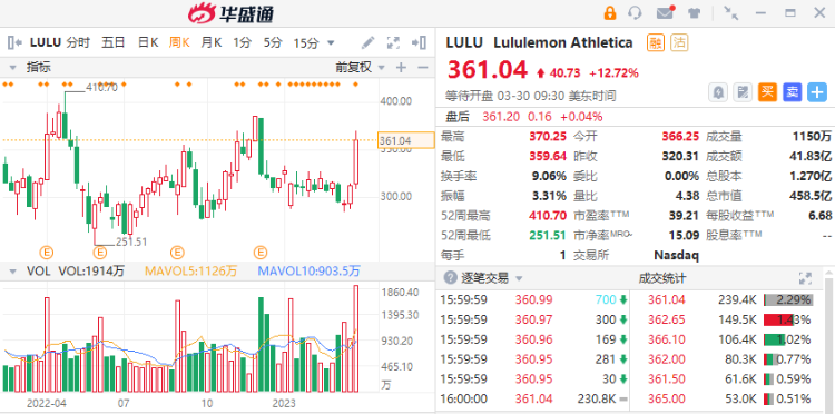3、lululemon绩后跳涨12%,Q4净营收同比增长30%,2023Q1业绩展望超预期