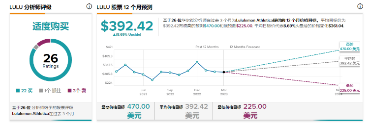 - 摩根士丹利分析师指出,Lululemon业绩的三个表现跑赢大盘:库存水平、毛利率和全年指引。公司预计今年收入在93亿至94.1亿美元之间,高于市场平均预期的91.4亿美元。