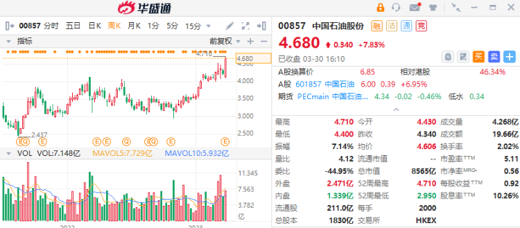 - 高盛发研报表示,中石油四季度EBITDA的上行惊喜主要来自营销和炼油业,又指其高于指引的股息,以及未来或进行股份回购,维持“买入”评级,并列入确信买入名单,H股目标价为5.8港元。