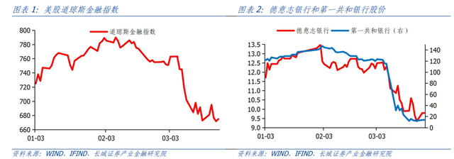 欧美银行业危机继续蔓延,金融危机和经济衰退越来越近。3月初的银行业危机中,美国SilverGate Bank、SVB、Signature Bank相继关闭,欧洲瑞士信贷被收购。虽然美联储及时发表声明并给予流动性支持,欧央行业在货币会议声明中强调了银行业的稳定,但是显然欧美银行业危机并未结束,可能仅仅只是开始。3月28日,美国第一共和银行股价13.82美元,较3月初的122.50美元下跌了88.7%,第一共和银行市值仅存11.3%,甚至还不如瑞信以约30%的市值被收购。3月23日,德意志银行CDS飙升,导致当日股价大跌6%,3月以来德银股价已经下跌了21%。