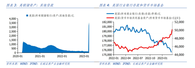 欧央行和美联储继续加息25bp,可能导致金融风险加剧。面对银行业危机,虽然美联储紧急给予流行性支持,但并未解决根本性问题。在《2023021欧美银行危机已经开启》报告中,我们指出,欧美银行面临的根本问题是利率快速上升。一方面,商业银行配置长久期的资产贬值,证券投资亏损。另一方面,利率上行导致存款流向货币市场共同基金,出现流动性风险。欧美仍在继续加息,银行处境继续恶化,金融风险可能积聚成金融危机。