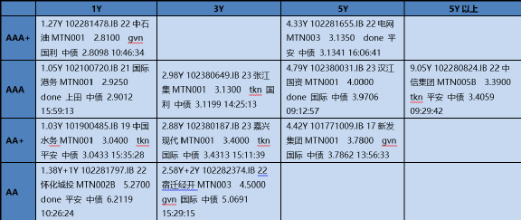 23万州经开MTN001, ,0-10e, AA+/-, 3Y+2Y, 国企, 【7.00】, 华夏银行, 2028/03/30, 周四到期