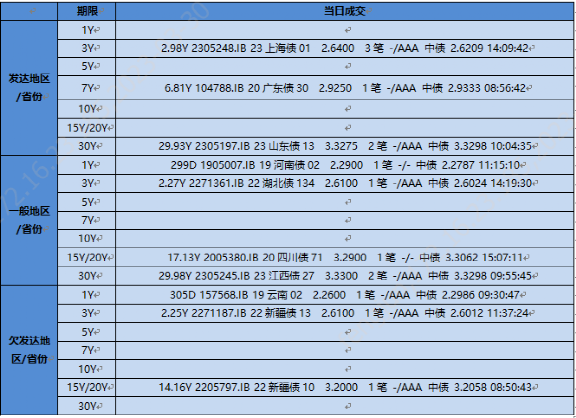 地方债今日交投一般,成交中长久期为主。