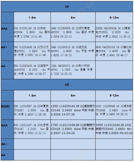 2023-03-31 短融一级新发信息