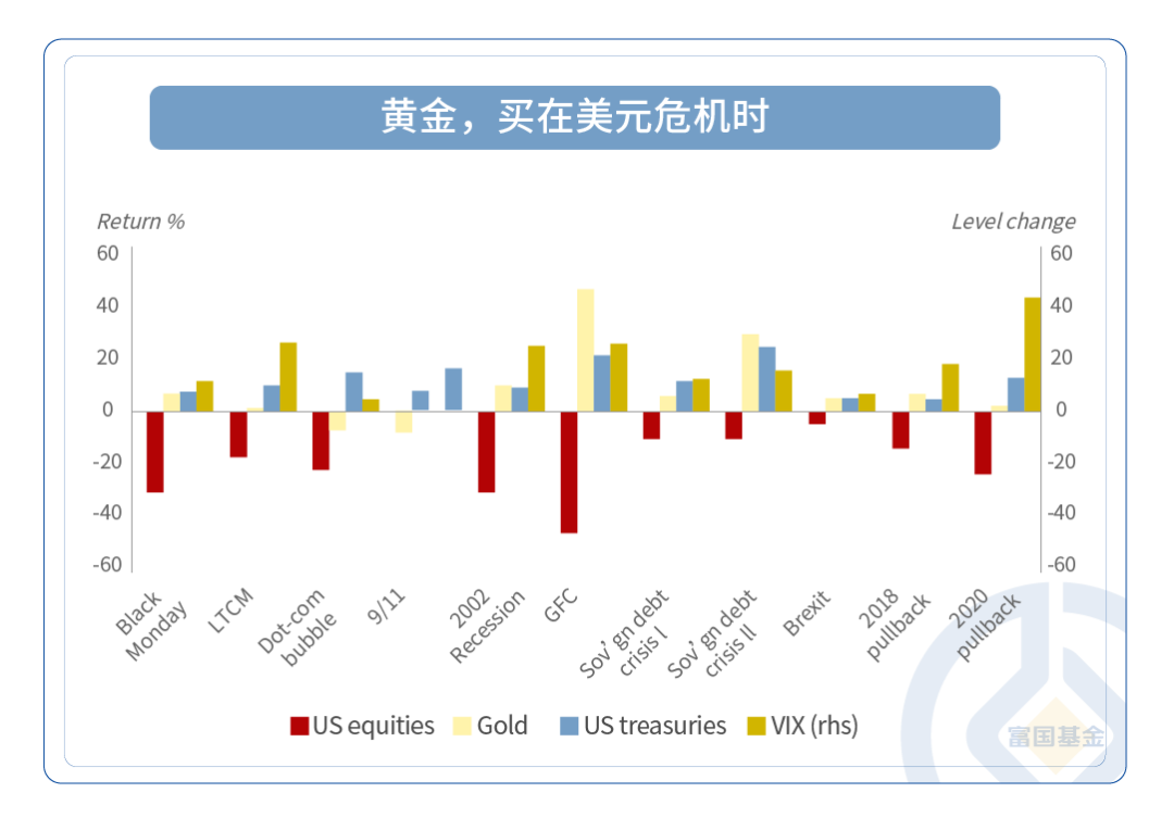 具体来看,美国历经长达40年“股债双牛”后,在当前“高通胀+高利率”,可能面临重塑,有利于黄金彰显配置价值。此外,在全球市场震荡加剧的背景下,黄金的安全性也具有不可撼动的配置价值。