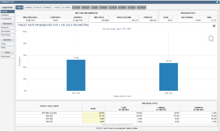 美联储5月加息25个基点的概率为52.9%