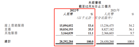 分业务来看,线上营销服务仍是主要收入来源,第四季度录得150.9亿元,同比增长14%,占总收入54.4%。