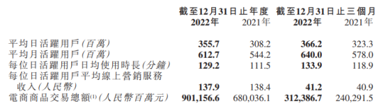 每位日活跃用户日均使用时长为133.9分钟,较去年同期的118.9分钟增长12.6%。