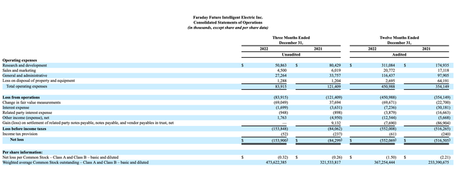 尽管法拉第未来官方表示,从2022年12月以来收到了1.116亿美元用于SOP的资金还将收到3840万—5840万美元的额外资金,但从财报公布的数据来看,法拉第未来的资金状况仍旧较为紧张。