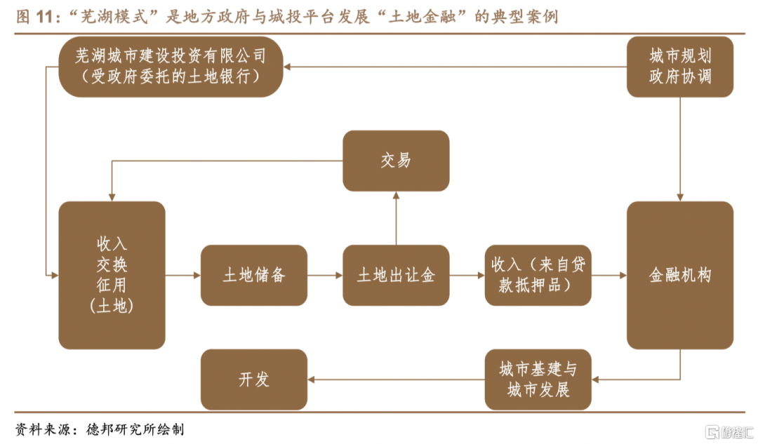 相比单纯依赖“土地财政”,“土地金融”更有助于解决地方财政短期面临的收支缺口,依托城投平台落实“因地生财”成为地方财政新的资金平衡思路。考虑到我国不同类型的土地出让后分别对应40至70年不等的使用年限,短期内同一地块无法反复出让,即“土地财政”在短期内是一次性行为。但将土地作为抵押物可以在解除抵押后再度融资,即“土地金融”可以在短期内循环往复。因此,相比单纯依赖“土地财政”,“土地金融”更加有助于解决地方财政短期面临的收支缺口。为提高土地特别是价格较高的住宅用地评估价值,地方政府普遍选择通过提高周边基建水平、规划学区等措施,提高特定住宅用地的吸引力,最终实现土地价值增值。在这一过程中,土地整理、基建等通过正外部性发挥效用的公益性投资大多成为当地城投平台的主营业务。