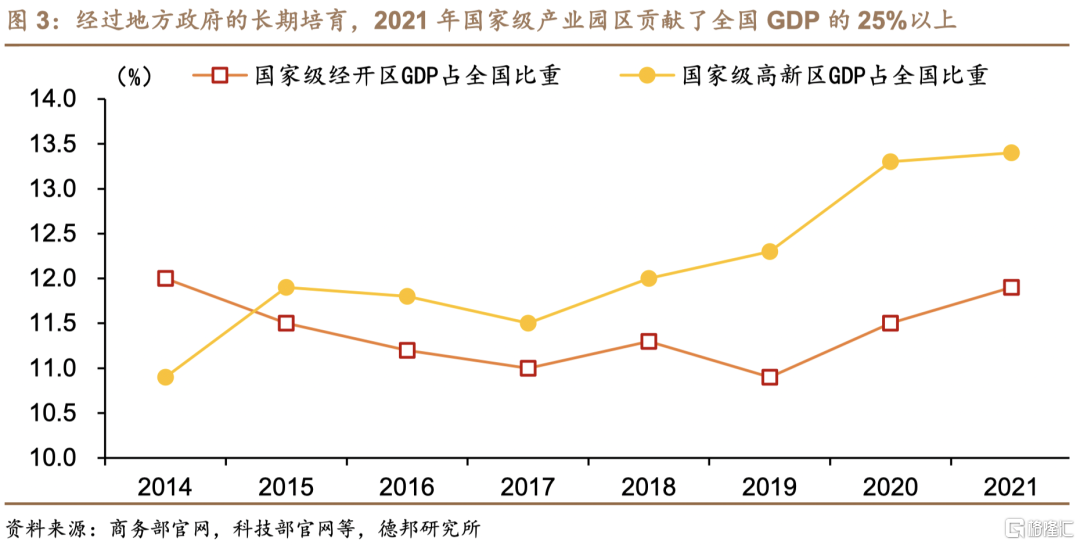 在蛇口工业区快速发展与中央政府允许兴办经开区的共同推动下,园区工业化逐渐成为各地政府发展经济的主流路径。1979年,我国第一个外向型经济开发区-蛇口工业区成立,在园区优惠政策和完备的硬件环境支持下,蛇口工业区吸引了大量外资投资,同时引入了大量先进的海外发展经验、技术、人才。1984年,在蛇口工业区及其他经济特区蓬勃发展的背景下,国务院关于批转《沿海部分城市座谈会纪要》的通知开始允许地方政府逐步兴办经济技术开发区,同年全国第一家国家级经开区在大连成立,4年后全国第一家国家级高新区的前身在北京中关村成立。特别是1992年“南巡讲话”后,全国经开区、高新区等各类产业园区的建设开始进入快车道。各地政府纷纷意识到设立产业园区后,凭借其独有的政策优惠、成熟的硬件环境(基础设施),园区能够扮演当地招商引资“排头兵”的角色,对于引领区域经济发展具有重要意义。截至2003年国办发[2003]70号文清理整理各类开发区过多过滥的问题时,全国已设立了各类开发区6015个,后续按要求撤消了其中3763个,参考同期全国共有333个地级行政区划计算,相当于整改前每个地级行政区划平均设立了18个开发区,地方政府对设立产业园区的热衷可见一斑。