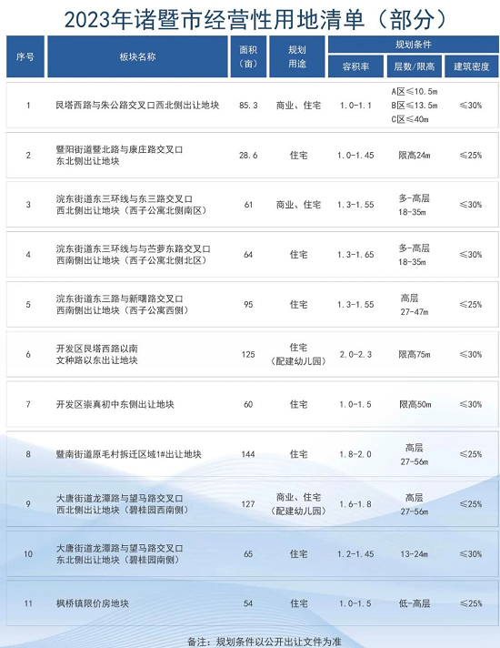 2023年诸暨供地计划(部分)