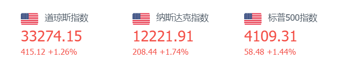 道琼斯指数上周涨3.22%,报33274.15点;纳斯达克指数上周涨3.37%,报12221.91点;标普500上周涨3.48%,报4109.31点。截至上周五收盘,科技股表现强势,特斯拉涨超6%,苹果、英特尔涨近2%,亚马逊、微软涨超1%。热门中概股方面,哔哩哔哩跌超6%,好未来跌近5%。