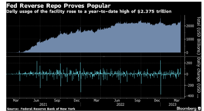 存放在美联储一项主要工具的资金规模创下2022年底以来的最大增幅,原因是市场中充足的现金以及对美国银行业挥之不去的担忧提振了对短期避险资产的需求。