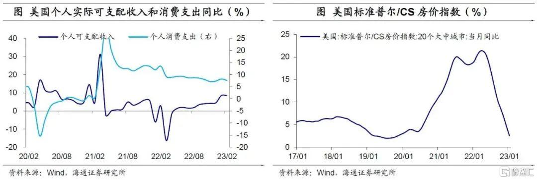 个人可支配收入保持强劲。2月美国个人可支配收入同比增速仍维持在8.5%的高位,与1月基本持平,且显著高于疫情前的增速。个人收入强劲,一方面,或与劳动力市场紧张,工资收入居高不下有关;另一方面,或与2023年美国税收政策调整有关,纳税人税收负担减轻影响。