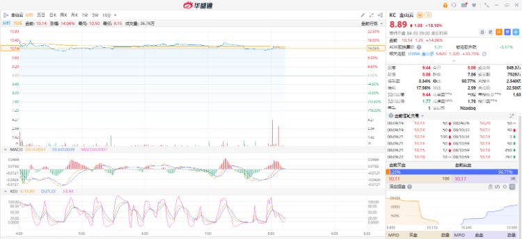金山云盘前涨近15%, 预计今年一季度营收至少18.5亿
