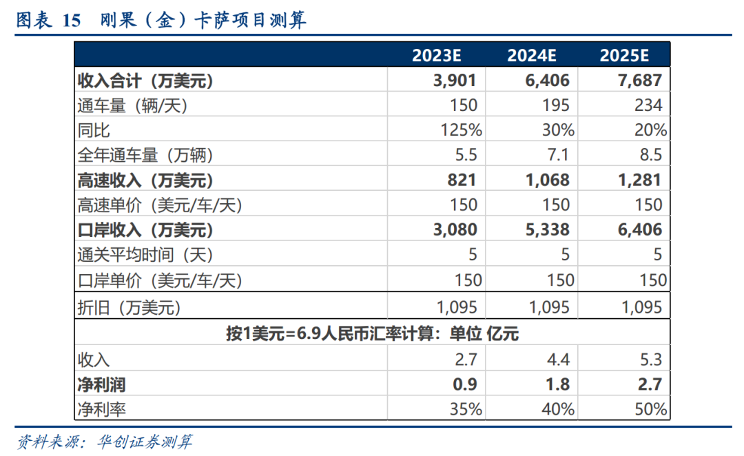 1)我们对卡萨项目的收益进行模拟测算(依据卡松口岸情况合理假设):