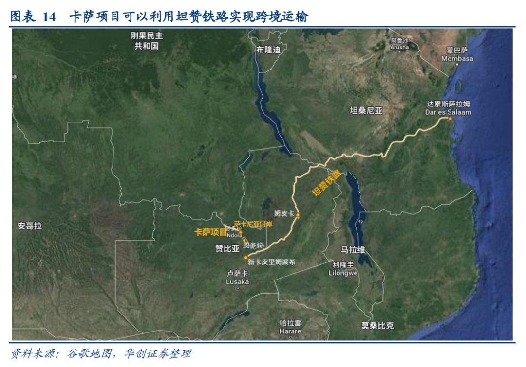 b)提升刚果(金)境外运输效率。萨卡尼亚距离赞比亚第二大城市恩多拉仅30公里。可以实现赞比亚境内公路-坦赞铁路-达累斯萨拉姆海港跨国多式联运的无缝对接,从而在运输成本和运力供给上获得极大的提升,以降低南部矿企运输成本。