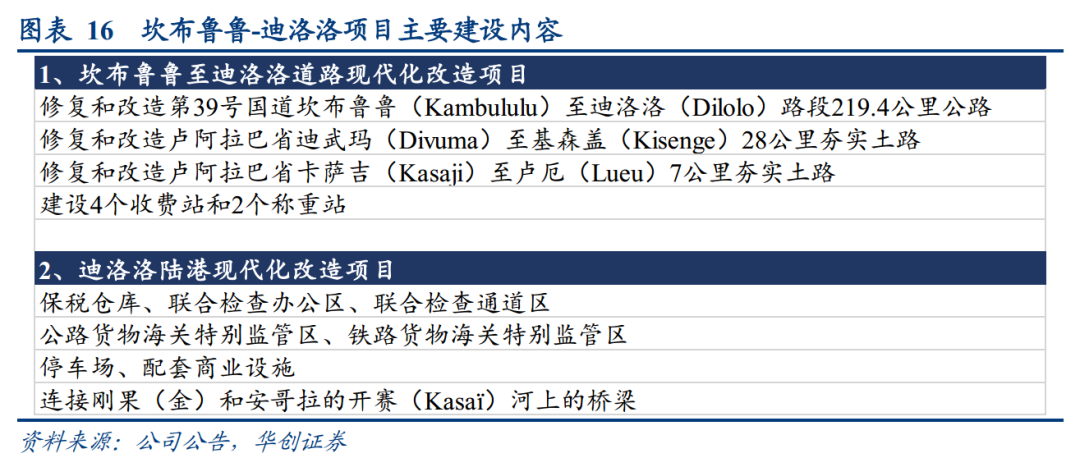公司公告表示,该项目将通过升级改造连接刚果(金)迪洛洛口岸的道路及物流基础设施,依托安哥拉本格拉铁路,打通刚果(金)铜矿带向西与安哥拉洛比托港口(安哥拉主要港口之一)之间的矿产资源运输通道,有助于提高物流运营效率,降低物流成本,对刚果(金)矿业发展和刚果(金)、安哥拉经贸往来作出积极贡献。
