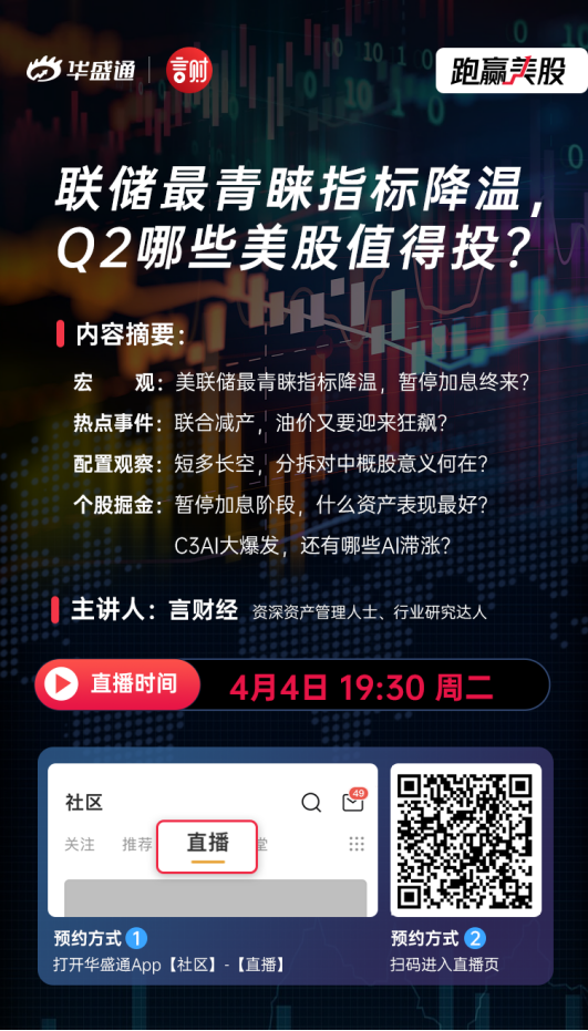 Q1已经过去了,猎杀时刻一个都没跟上的發友们也别难受,今天依旧是抄作业的一天。今晚(4月4日)19:30言财老师将对Q2的投资机会作展望,记得的准时收看哦,预约和订阅也记得点上呐~ 锁定《跑赢美股》 点击跳转直播>>>联储最青睐指标降温,Q2哪些美股值得投?