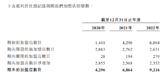 于是我们看到,锅圈一边是疯狂开店,一边又是大量门店倒闭。于2020年、2021年及2022年,锅圈已关闭的加盟店数量分别为28家、194家及279家,分别占截至2020年、2021年及2022年12月31日的加盟店总数的0.7%、2.8%及3%,虽然比例较低,但关店数量却是在疯狂增长。