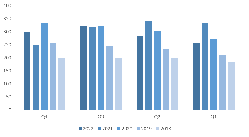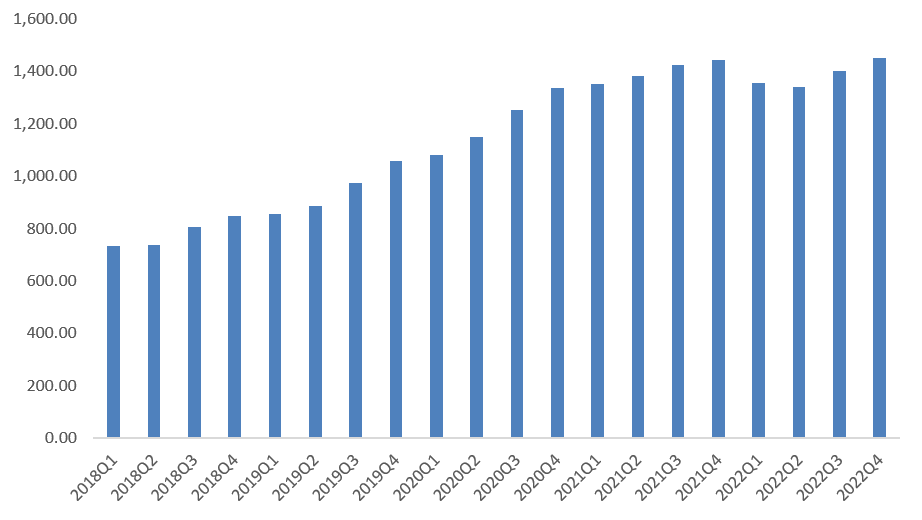 利润端,2022年Q4,腾讯实现归母净利润1062.68亿元,同比增长12%;实现非国际准则(Non-IFRS)归母净利润297.11亿元,同比增长19%;2022年全年实现归母净利润1882.43亿元,同比下降16%;实现非国际准则(Non-IFRS)归母净利润1156.49亿元,同比下降约7%。