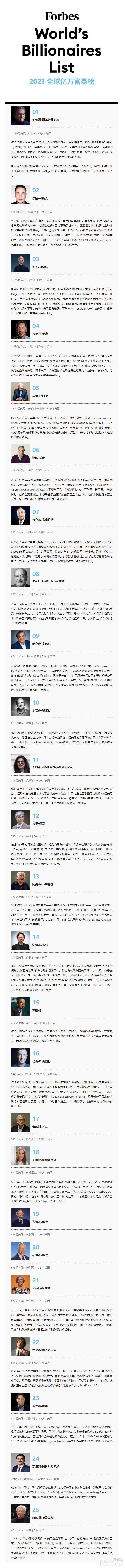 近日,美国《福布斯》杂志中文网站公布2023全球亿万富豪榜。