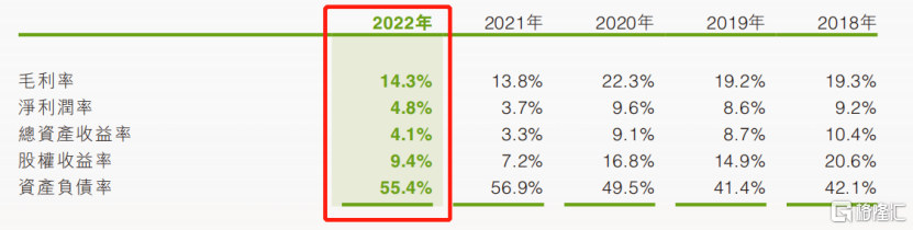 2022年,浦林成山的多项盈利指标也开始拐头向上,包括毛利率、ROE等。与此同时,公司的资产负债率有所下降。