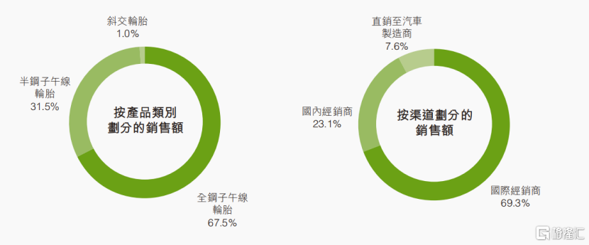 再来看浦林成山的2022年经营格局---产品和渠道结构较为多元,全钢子午胎、海外配套市场均在产品和市场视角下贡献了绝大多数的收入体量。