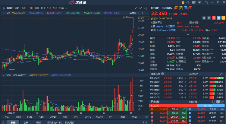 中芯国际(00981)早盘再涨超7%,本周累计涨幅超20%。截至发稿,华虹半导体涨超3%、宏光半导体涨近3%、上海复旦跟涨。
