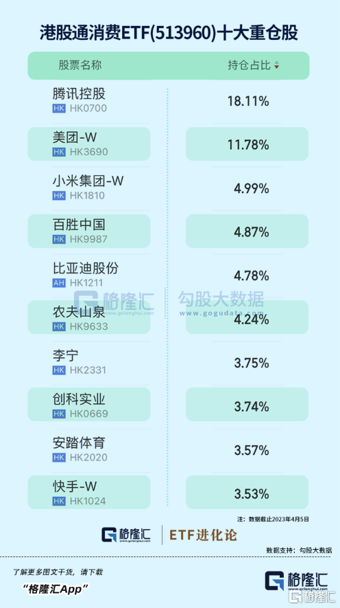 同时,港股通消费指数相当有特色,它所追踪的标的和A股消费指数有很大的不同,表现为白酒、医美、家电、食品传统标的占比不高,但汇集一大批像互联网消费、电动车,还有A股没有的国潮品牌,像李宁、安踏,以及像农夫山泉这类饮料茅,这些标的都是各个消费细分领域中的优质资产,覆盖居民的“衣食住行”,以能够代表传统消费,又能够代表新消费、新零售,代表广泛,也更加符合中国消费升级的大趋势。