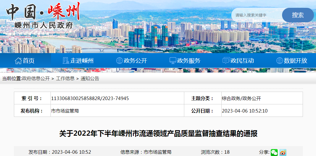 据通报,2022年下半年,根据《中华人民共和国产品质量法》、《产品质量监督抽查管理暂行办法》等法律法规及浙江省产品质量监督工作的有关规定,嵊州市市场监督管理局组织开展了全市流通领域产品质量专项监督抽查。