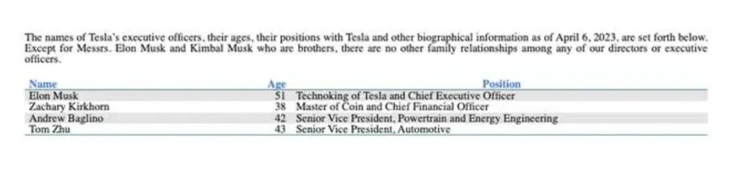 值得注意的是,当地时间4月6日,特斯拉在美国证券交易委员会(SEC)提交的一件监管文件中披露,Tom Zhu(朱晓彤)自2023年4月起担任公司汽车业务高级副总裁。据介绍,朱晓彤于2014年4月加入特斯拉,曾担任多个运营职务,后担任全球副总裁、大中华区总裁,领导上海超级工厂建设和运营。