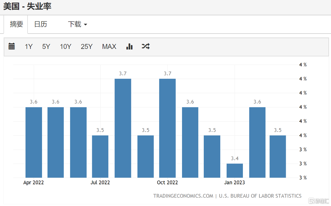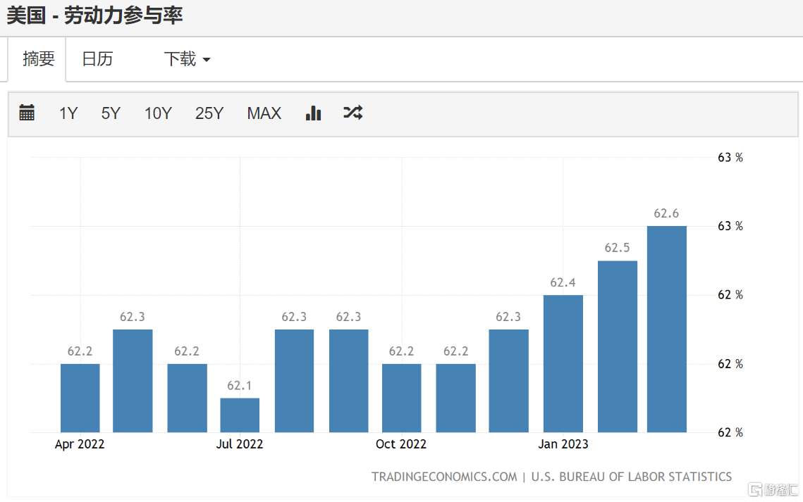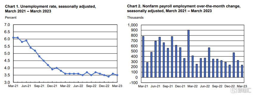 非农报告显示,3月失业率降至3.5%,为今年1月以来新低,前值3.6%。原因是劳动力参与率上升至新冠疫情大流行前的最高水平。