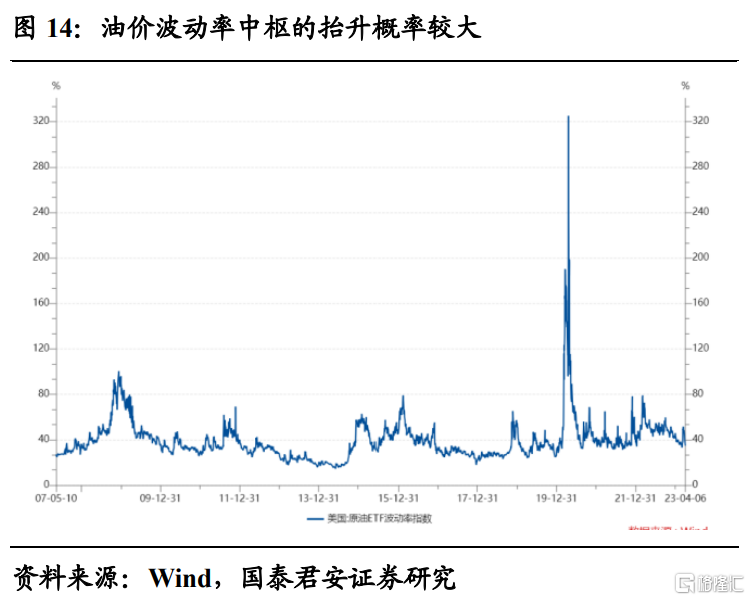 结合供需及库存来看,我们认为油价可能在80美元/桶的高位持续运行,但走势可能不会“一帆风顺”,波动率中枢的抬升概率较大。主流机构的预测显示,2023年内油价有望逐季上涨至90美元/桶以上。我们认为,这一轮衰退是“产能约束下的衰退”,即便美欧发生深度衰退,油价可能再度回落到70美元/桶附近,进一步回落到60甚至50美元/桶的风险有限。同时,若中东、俄乌等地缘局势再度紧张,直接影响到原油供给端,油价短期破百也不是没有可能。并且,上述情形的发生概率其实都不低,因此,2023年油价的波动可能要比主流预期动荡得多。