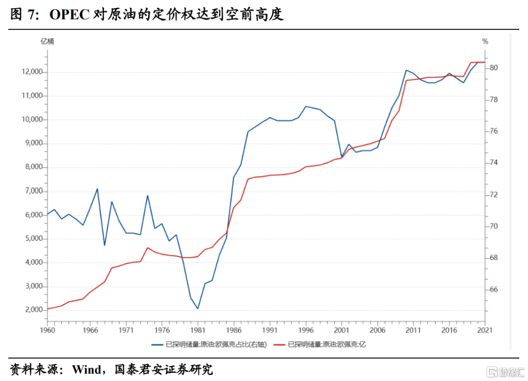 1.OPEC大幅减产背后,被忽视的定价权争夺。4月2日,OPEC+(包括俄罗斯)整体的自愿减产总量达到166万桶/日,引发油价大涨我们认为,OPEC大幅减产的背后玄机,是原油定价权的空前强化。何为原油的定价权?无论是看产量还是产能,OPEC表面上都不具备支配原油生产秩序的力量。从闲置产能(产能-产量)的角度出发,OPEC几乎占了全球9成的原油闲置产能,这也是OPEC减产的最大底气所在。中长期来看,OPEC的已探明原油储量突破1.24亿桶,占全球的比重稳步提升至80.4%,进一步强化了OPEC对油价的支配权。